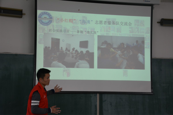 2016年4月24日下午15点40分,船舶工程学院“小红帽”志愿者服务队与国防教育学院“海魂”志愿者服务队开展交流活动。本次交流会由“小红帽”队长姜涛组织,各部门副部主讲。部分大一队员参加了本次交流会。