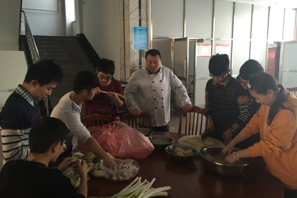 12月6日,五名同学前往太平桥市场采购食材。12月7日上午,十二名同学在大美食堂三楼进行前期准备工作,包括剁馅,洗菜和切菜。同学们于13:30在大美食堂三楼集合,用一个半小时的时间把饺子全部包好,然后又用半个小时把所有饺子全部煮好。同学们把饺子进行分装,并送至公寓大爷,食堂工作人员和老师手中,然后同学们也开始品尝自己包好的饺子。在吃完饺子以后,同学们进行了半个小时的后续清扫,于16:00从大美食堂离开。