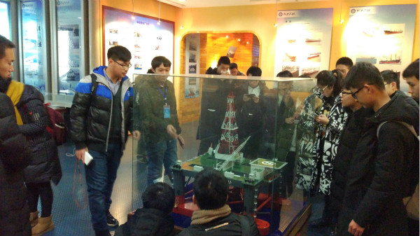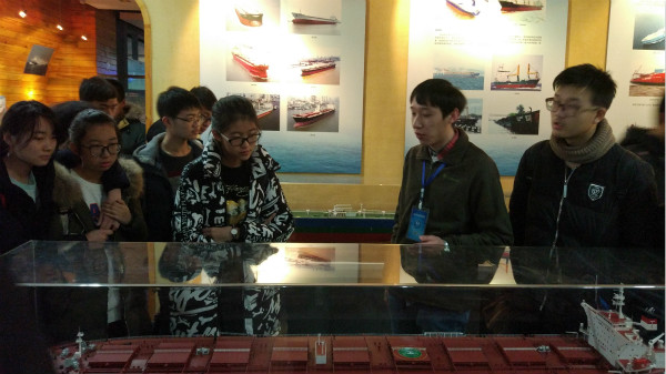 在船舶博物馆解说员的带领下,同学们先后参观了古代船舶、现代船舶、货运船舶、工程船舶以及军舰的各种模型。解说员为同学们讲解了船舶与海洋平台的发展史、各式船舶的构造以及哈尔滨工程大学对中国船舶工业发展做出的突出贡献。同学们“亲眼”见到了“辽宁舰”、“哈尔滨舰”、“蛟龙号”、“雪龙号”等船舶,了解了它们的大概构造。特别是当讲解员介绍到蛟龙号的两位潜航员是我校校友时,同学们不禁鼓掌致敬。下午两时三十分参观完毕,同学们离开船舶博物馆。