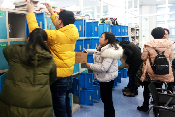 到达图书馆后,读者协会负责人和图书馆刘老师布置本次的工作内容,并发放工具和消毒水。志愿者们分成两组,一组负责整理5A、5B、5C处的图书柜,另一组负责清理5D、5E及走廊上的图书柜。志愿者们有条不紊地将各自负责区域内的书柜清理干净,当在书柜里面发现贵重物品后,由读书协会负责人拍照整理,以防同学们的物品丢失;最后志愿者们用消毒液对书柜内部进行消毒处理。