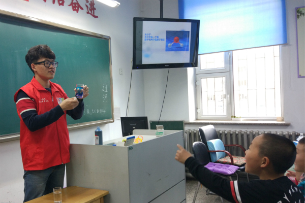3月21日中午12时50分,船舶工程学院小红帽志愿者服务队与20150114团支部一起来到香坊区通乡小学开展以“神奇的水”为主题的新一期“七彩课堂”志愿服务活动。由小红帽志愿服务队牛奔带队,于一飞、陈天文主讲。
