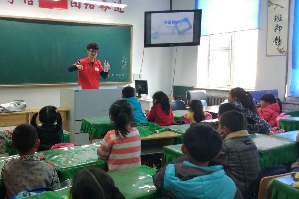 本期七彩课堂的主题是“神奇的水”,志愿者12点50到达通乡小学,由于一飞和陈天文在一年级两个班级同时开展。课堂上,志愿者们用自己精心准备的PPT和小实验给同学们讲解和水有关的小知识,让同学们直观地观察到许多水的物理特性,并和积极同学们开展互动;同学们认真听讲,并积极提出问题,课堂氛围十分活跃。志愿者精心准备的小实验深深吸引了同学们的注意力,同学们对知识渴求的眼神深深感动了志愿者。