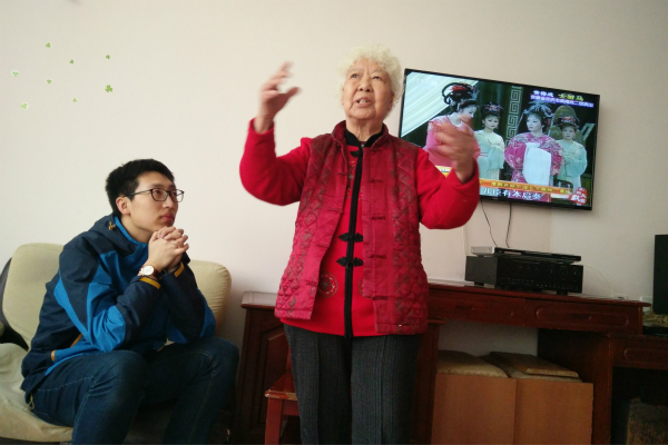 团支部成员一直陪老人们聊天,听老人们讲过去的故事,欣赏了老人们的表演,更了解老人们的生活。四点二十,由于公寓要开饭,团支部成员就与老人们告别了并表示以后会常来看望他们。一个小时的聊天让老人们很是开心,这使他们无聊的生活也此增添了乐趣。