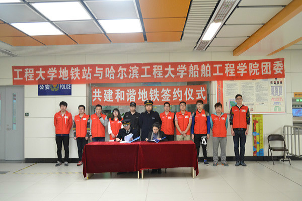 4月14日下午2时30分许,船舶工程学院团委与工程大学地铁站签约仪式在工程大学地铁站准时开展,出席仪式的有船舶工程学院团委书记李蕊和工程大学地铁站站长,同时工程大学地铁站的部分工作人员和船舶工程学院的学生也参加了此次仪式。