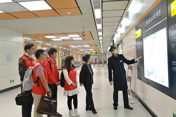 仪式开始,双方在签约仪式上仔细阅读了共建条约之后,分别在两份协议上签字盖章,并交换协议。双方都表达了长期合作,共同建设良好出行环境的美好祝愿。签约完成后在站长的带领下李蕊老师及随行志愿者们共同参观了地铁站。站长对地铁站内的各个标识和按钮等设施作了详尽的介绍,志愿者们对经常使用的地铁站又有了新的认识。其中,站长特别提到无论国内外地铁站内是不允许吃东西的,墙上粘贴有禁止饮食的标识的。站长希望我们大学生能自觉遵守规定。
