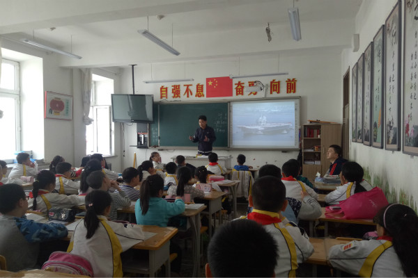 2017年5月15日,船舶工程学院小红帽志愿者服务队联合海洋知识爱好者协会四位志愿者为育红小学四年级的同学开展了一场别开生面的科普知识讲座:走进航母。