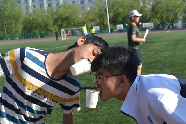 在趣味项目中,更是考验了队员间的相互配合,无论是倒水接力,还是夹气球,都可以看到他们的默契,同时也为同学们增加了乐趣,活跃了运动会的气氛。