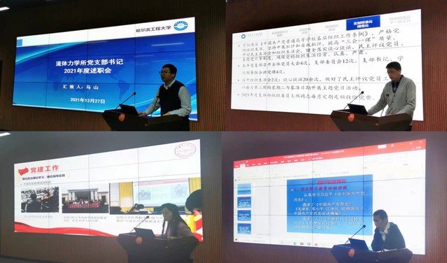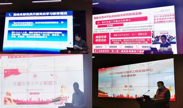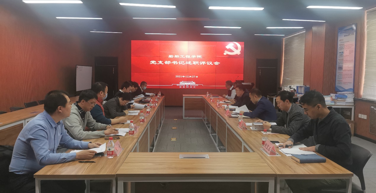 12月27日,船舶工程学院2021年度党支部书记述职评议考核会在船海楼10楼数值水池会议室举行。院党委书记李荣生,院党委副书记苏智,副院长田宇欣、康庄、李晔、倪宝玉一同出席会议。