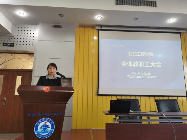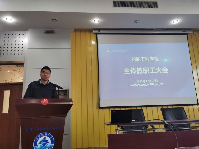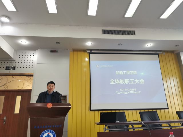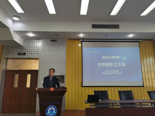 12月28日下午,船舶工程学院在船海楼1513报告厅举行教职工代表大会,宣布校党委决定。校长、校党委副书记姚郁,党委常委、组织部长兼党校常务副校长张石梅出席会议。船舶工程学院党委书记李荣生主持会议。