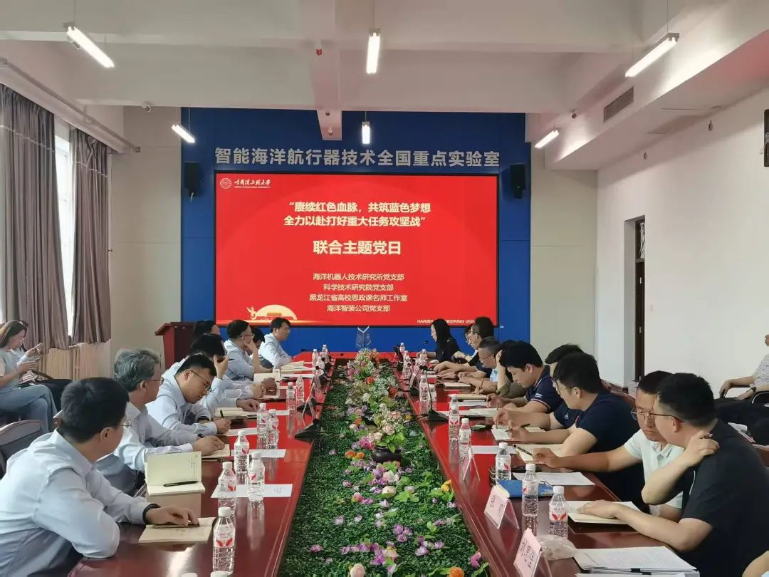 为深入学习习近平总书记视察学校重要讲话精神,激励师生传承和发扬“哈军工”优良传统,紧贴强国强军需要,抓好教育、科技、人才工作,6月20日,船舶工程学院海洋机器人技术研究所党支部、科学技术研究院党支部与哈电集团海洋智装公司党支部以“赓续红色血脉 共筑蓝色梦想 全力以赴打好重大任务攻坚战”为主题联合开展主题党日活动,活动邀请哈尔滨工程大学马克思主义学院黑龙江省高校思政课名师工作室共同参加。