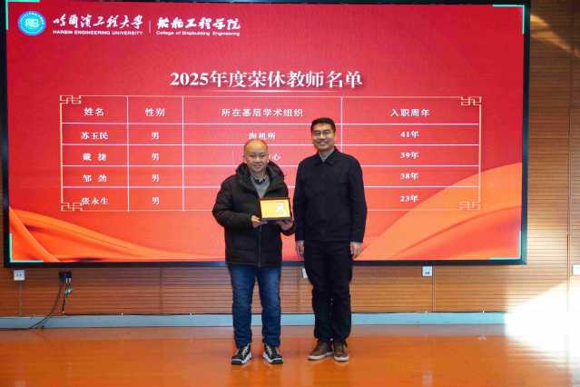 李积德教授为参会人员分享了教师成长与事业发展的宝贵心得。他表示,一路亲历并见证了从哈军工到哈船院,再到哈尔滨工程大学栉风沐雨、弦歌不辍的奋斗历程。船舶工程学院作为这一厚重历史中最鲜明的血脉传承者,今日取得的成就来之不易、振奋人心,特向全体获奖集体与教师致以热烈祝贺。面向未来,他勉励青年教师们勇担海洋强国时代重任,继续弘扬“哈军工”精神,在科研中追求卓越、在育人中矢志报国,并祝愿学院在新征程中续写华章、再创辉煌!