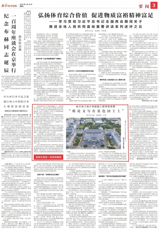 3月25日, 新华社《新华每日电讯》及客户端刊发《哈尔滨工程大学船舶工程学院党委:“将论文写在蓝色国土上”》,聚焦学院基层党建经验做法,展现了师生们坚守忠党、报国、强军的信念,坚持船海特色,矢志创新,向海图强的生动实践。