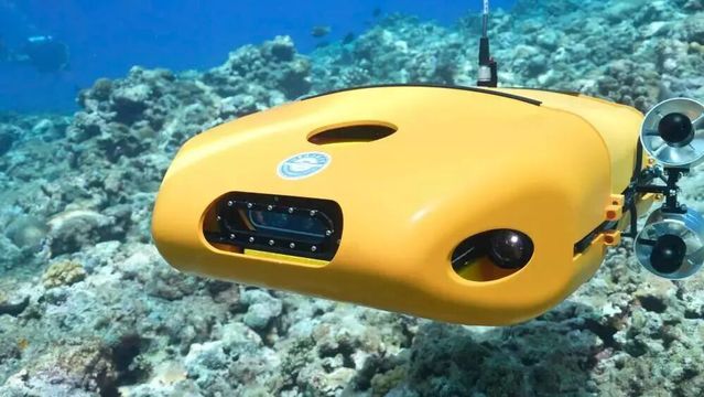 2025年5月22日,哈尔滨工程大学船舶工程学院海洋无人航行器技术“兴海”学术团队研制的水下机器人“海龟”开展珊瑚礁观测作业。(刘开鑫摄)
