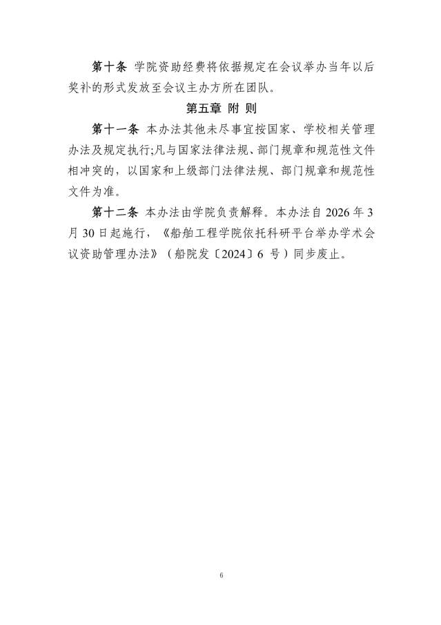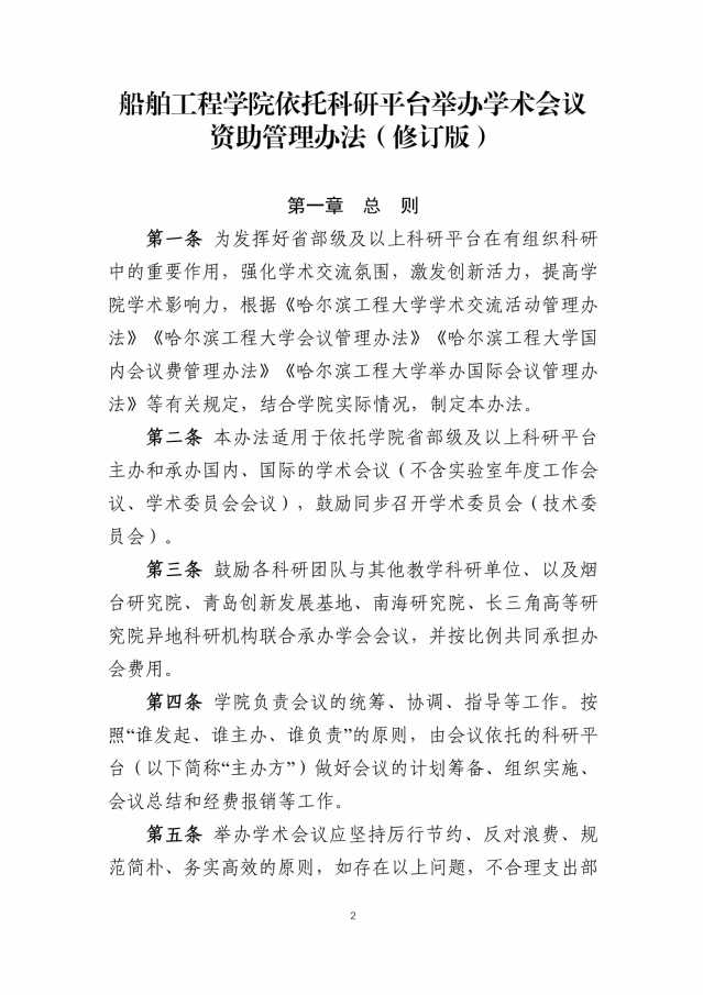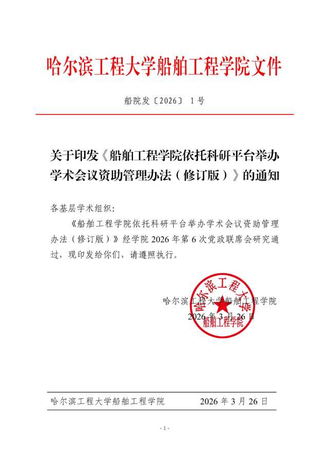 关于印发《船舶工程学院依托科研平台举办学术会议资助管理办法(修订版)》的通知