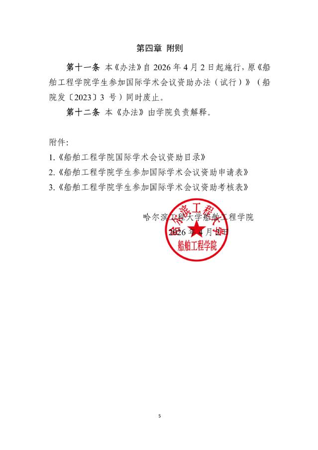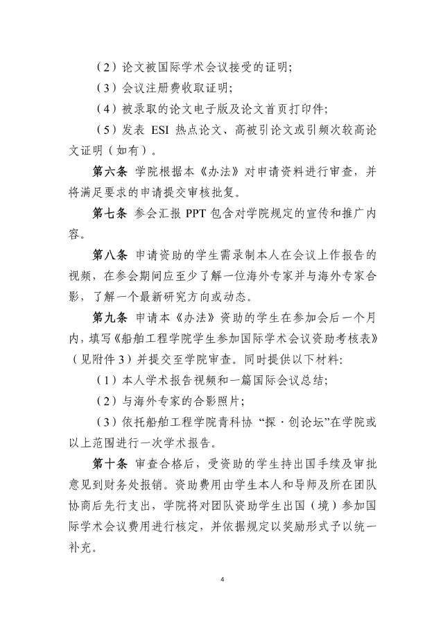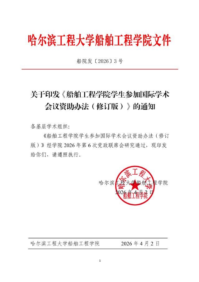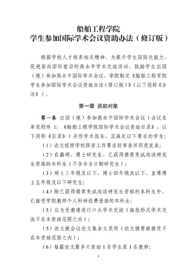 关于印发《船舶工程学院学生参加国际学术 会议资助办法(修订版)》的通知
