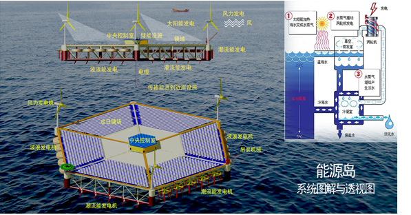 Marine Energy Island - Develop 5MW-20MW class marine energy islands for the construction of offshore and South China Sea islands and equipment operations, and collect various forms of energy such as tidal energy, wave energy, offshore solar energy and wind energy at sea, through renewable energy integration and the use of electricity, desalinated seawater, salt production and hydrogen production to provide energy and system technology and equipment for remote islands, offshore operations and marine aquaculture.